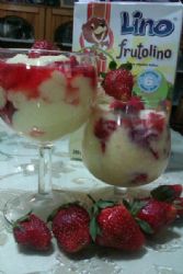 Во чаша ставаме сируп од пасирани јагоди , потоа неколку лажички припремано и оладено лино фрутелино . Во секоја чаша се ставаа јагоди како декорација. Одозгора преливаме со сирупот од јагоди добиен со пасирање.Декорираме со јаготки.