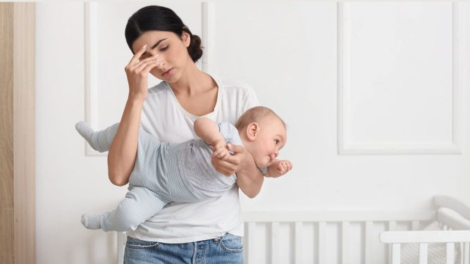 - Физичка и емоционална исцрпеност. Недостатокот на сон, болка и новите одговорности го исцрпуваат организмот.